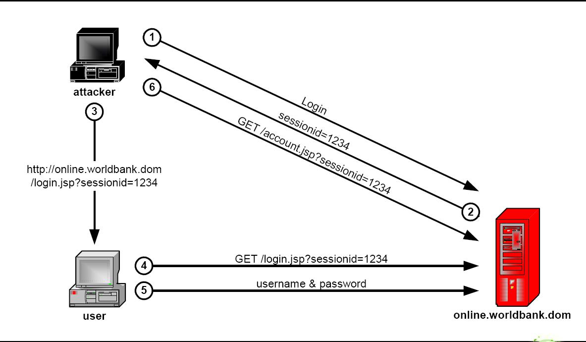 4. 黑客把帶自己sessionid的地址發(fā)送給一般用戶。http://www.abc.com/login.jsp;jsessionid=1234(不同的語言帶sessionid的方式不一樣,著是jsp的方式)