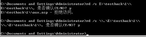 采用del \\.\E:\PRN\aux.asp:.jpg的方式,失敗了,最后將其他jpg文件移走,使用rd方式刪除整個目錄 看圖: