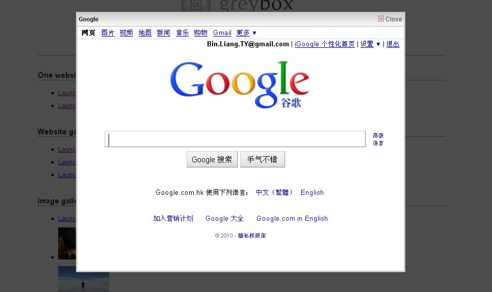 類似于thinkbox,lightbox等。用于以一種別致的模式對(duì)話框方式展示頁(yè)面,圖片或者其它內(nèi)容。這是它的官網(wǎng):http://orangoo.com/labs/GreyBox/
