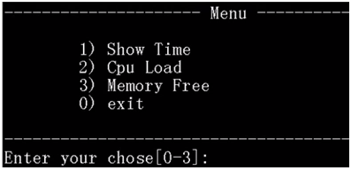 1、修改menu.sh 采用非菜單式,參數(shù)傳遞方式來進(jìn)行選擇。 例如 #./menu.sh 1 輸出時(shí)間