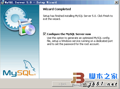 待文件復(fù)制安裝完畢后,進行MySQL設(shè)置界面,單擊Finish。