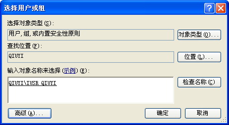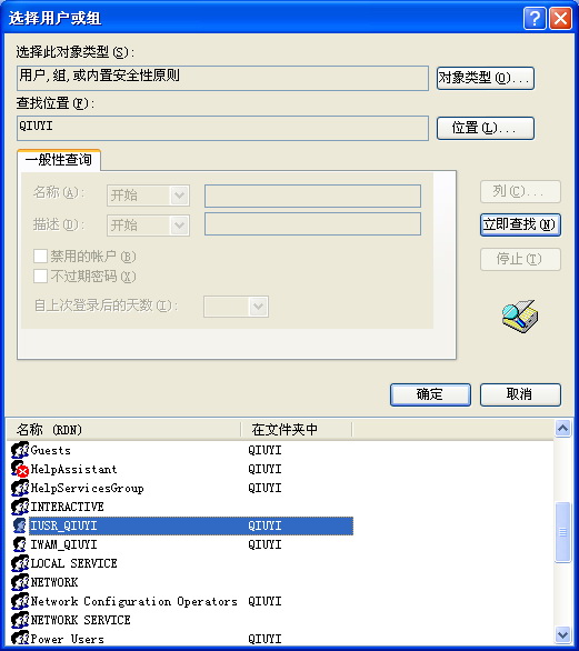 選擇以“IUSR_”開頭的用戶名稱,名稱的后段是你的計(jì)算機(jī)名稱(圖中我的計(jì)算機(jī)名稱是QIUYI),如IUSR_QIUYI。點(diǎn)擊“確定”。