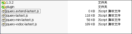 | 文件夾1.3.2 | 按照版本號組織的jQuery類庫. | 對于1.3.2即以后的每個jquery版本, 會按照文件夾存放類庫文件. 但是會用最新的穩(wěn)定版本覆蓋各lastest名稱的js文件. |