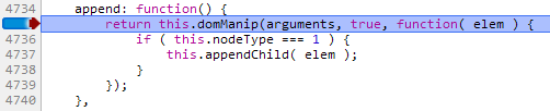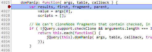 由此可見(jiàn),對(duì)于內(nèi)聯(lián)的script標(biāo)簽,jQuery通過(guò)在head中創(chuàng)建script標(biāo)簽來(lái)執(zhí)行。