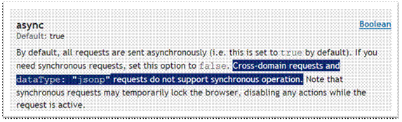 大家有沒有從上面的分析中發(fā)現(xiàn)問題,AJAX來加載其他域的資源,這不是明擺著違背了大名鼎鼎的同源策略(Same Origin Policy)了么?所以jQuery不可能這么實現(xiàn),我們來看看jQuery.ajax文檔是怎么說的: