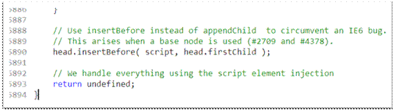 注釋已經(jīng)寫的很清楚了,如果是通過GET方式請求JavaScript文件,并且這個文件是在其他域下面的(remote),那么就通過在head中添加script標簽來處理,而不是走AJAX的流程。所以在這個條件分支結(jié)束的時候,直接從函數(shù)體返回: