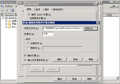 打開IIS添加一個MDB的映射,讓mdb解析成其他下載不了的文件:“IIS屬性”—“主目錄”—“配置”—“映射”—“應(yīng)用程序擴(kuò)展”里面添加.mdb文件應(yīng)用解析,至于用于解析它的文件大家可以自己進(jìn)行選擇,只要訪問數(shù)據(jù)庫文件出現(xiàn)無法訪問就可以了。