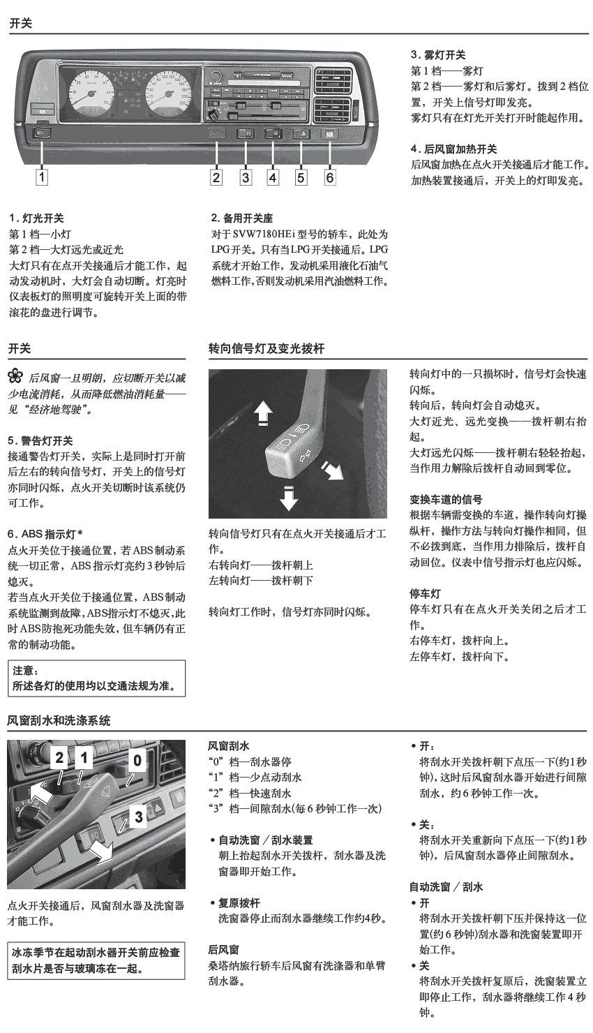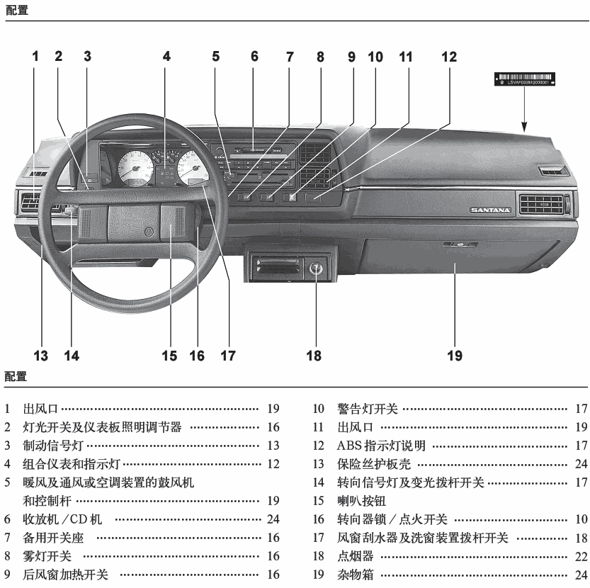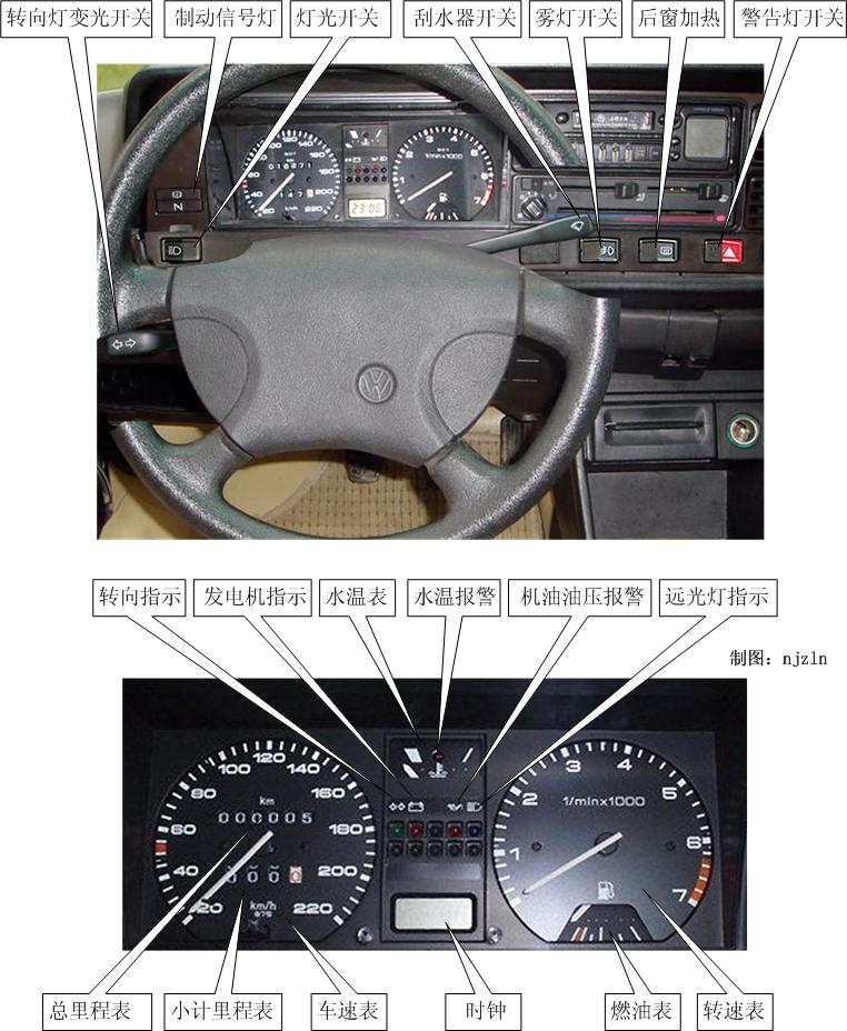 注:圖是桑塔納的說(shuō)明書(shū)上的,但不是我們訓(xùn)練用的車型。 但里面的介紹信息說(shuō)明的不錯(cuò)。