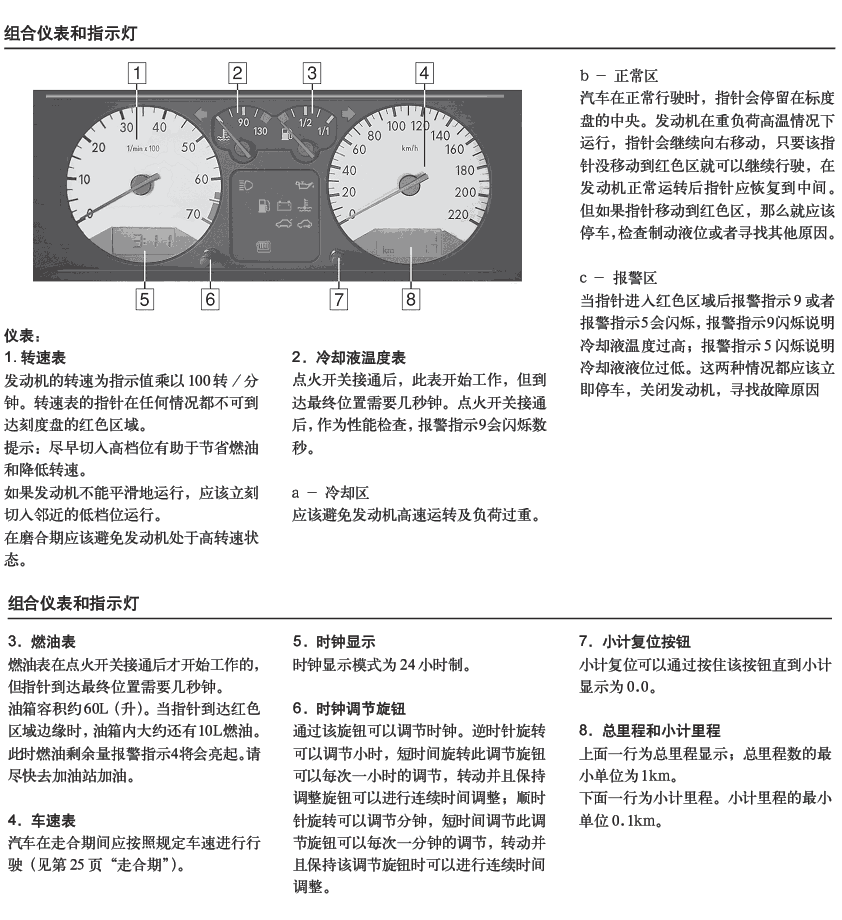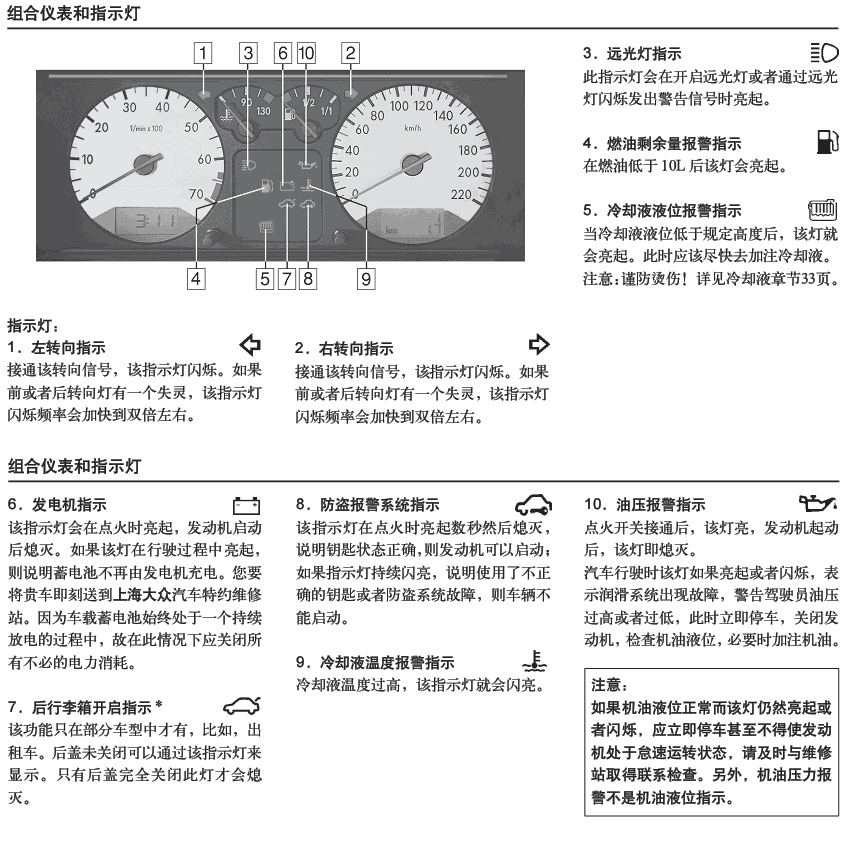 組合儀表和指示燈的使用圖解: