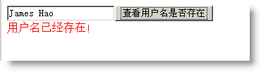 <input id="txtName" type="text" /><input type="button" value="查看用戶名是否存在" id="btn" onclick="JudgeUserName();" />