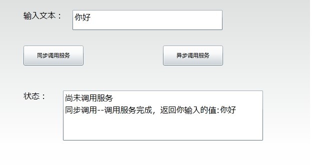 <Button Content="同步調(diào)用服務(wù)" Height="40" HorizontalAlignment="Left" Margin="67,98,0,0" Name="button1" VerticalAlignment="Top" Width="120" Click="button1_Click" />