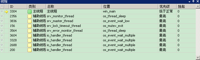 Io_handler_thread:從名稱可以知道這些是I/O線程,負責進行磁盤I/O。