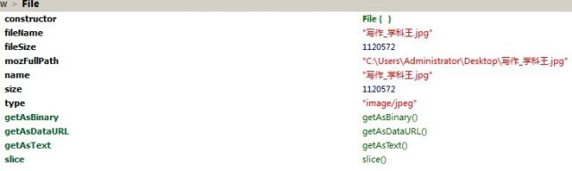 第一張圖是 Chrome 下的 File 對象,第2個圖是Firefox下的File對象。Firefox下會多幾個方法,注意這里的讀取數(shù)據(jù)方法是同步的。