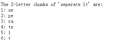 提交表單后php處理出來的頁面。在這個(gè)例子中,我輸入一個(gè)單詞,然后給定一個(gè)長度,將單詞等分成該長度的塊。