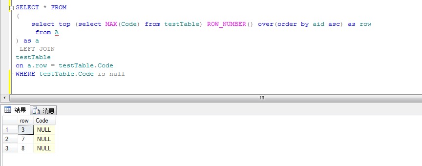 查詢(xún)所有斷號(hào)的SQL如下: