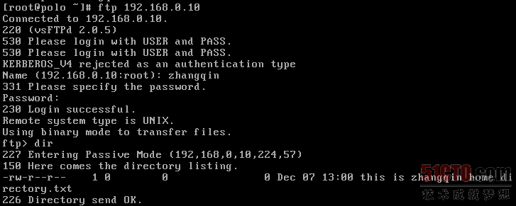 vsftp在安裝完成并啟動后,即可使用。默認(rèn)情況下可以使用匿名用戶,下圖中使用ftp命令進(jìn)行。