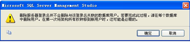3. 其實(shí)在數(shù)據(jù)庫級別的【安全性】創(chuàng)建的用戶是屬于全局的,當(dāng)設(shè)置了某個(gè)數(shù)據(jù)庫,比如TestLog之后,這個(gè)用戶就會(huì)出現(xiàn)在這個(gè)數(shù)據(jù)庫的【安全性】列表中。如果刪除TestLog這個(gè)用戶,會(huì)出現(xiàn)下面的提示。刪除了后,這個(gè)用戶就無法登陸了。需要去對應(yīng)的數(shù)據(jù)庫中刪除用戶,如果沒有刪除又創(chuàng)建,是會(huì)報(bào)錯(cuò)的。