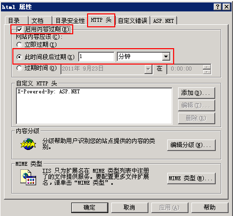 要讓靜態(tài)頁面支持這個(gè)需求,我們需要用到http頭中的Cache-Control: max-age。值得注意的是Cache-Control是在HTTP/1.1協(xié)議下的標(biāo)識,它是HTTP/1.0協(xié)議中的Expires的升級。為了讓靜態(tài)頁支持Cache-Control,一種方案是在IIS中進(jìn)行設(shè)置,如下,我在需要靜態(tài)緩存的頁面或者文件夾上右鍵->屬性: