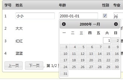 代碼中 dateFormat 屬性設(shè)置了日期框的日期格式, 可以設(shè)置更多的屬性, 多個屬性使用 ; 號分隔即可. 日期框的值綁定為字段 birthday, 不過日期使用了 jQuery.panzer.formatDate 函數(shù)來格式化日期的輸出, 而這里的格式化形式類似于 .NET.