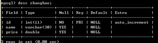 注意:需要提前在MySQL數(shù)據(jù)庫中建立一個表“zhanghao”