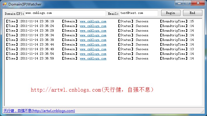 域名是否正常,網(wǎng)站是否可以正常訪問是很頭痛的問題,怎樣簡(jiǎn)單地監(jiān)控域名是否可以正常訪問呢,這里發(fā)布一款域名監(jiān)控小工具:Domain(IP)Watcher