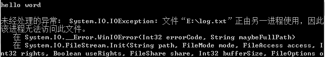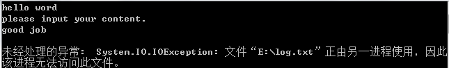 2:在對一個文件進(jìn)行一些操作后(讀/寫),隨后想追加依然報System.IO.IOException: 文件“XXX”正由另一進(jìn)程使用,因此該進(jìn)程無法訪問此文件。次問題與1相似。
