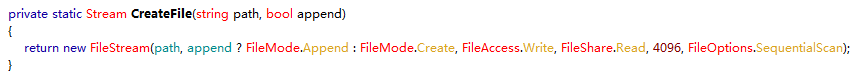 實(shí)際上它們也是在內(nèi)部初始化了FileMode/FileAccess/FileShare,例如File的靜態(tài)方法最后都會生成一個Stream實(shí)例,其中便調(diào)用了私有方法