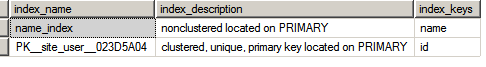 sp_helpindex site_user -- 多出來我們新建立的索引