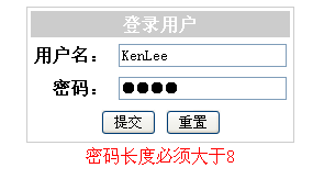 txtPassword: { required: "請輸入您的密碼", minlength: "密碼長度必須大于8" }