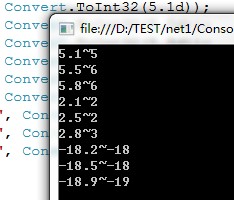 Console.WriteLine("5.1~{0}", Convert.ToInt32(5.1d));