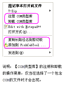 FishCabToolExt.dll中還有一個(gè)我經(jīng)常用到的功能就是:當(dāng)您在右擊一個(gè)文件或者文件夾時(shí),可以非常方便地獲取它的所在全路徑。效果圖前面有,請(qǐng)參考前文。