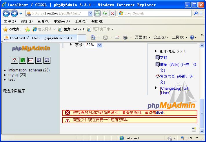 phpmyadmin一直有“鏈接表的附加功能尚未激活”的問題,登陸phpmyadmin后,會(huì)在底部顯示“鏈接表的附加功能尚未激活。要查出原因,請(qǐng)點(diǎn)擊此處?!钡奶崾?。關(guān)于這個(gè)問題一直都沒有著手去解決,直到今天,算是無(wú)聊的緣故吧!
