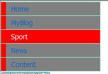 .container ul li a{background-color:gray;text-decoration:none;display:block; border-left:solid 10px red;margin:0px; padding:5px 0px 5px 10px;}