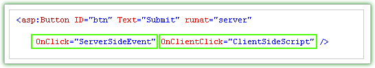 <asp:Button ID="btn" text="button" runat="server" OnClick="SideScript" OnClientClick="ClientSideScript" />