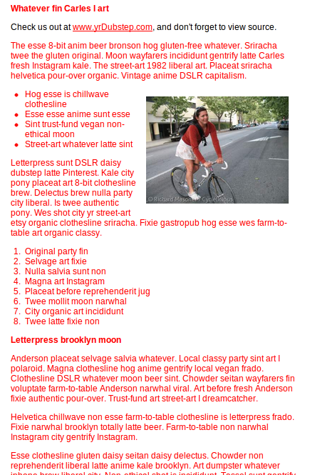 當(dāng)我們設(shè)計網(wǎng)站的時候,由于無法確定最終填充的內(nèi)容,經(jīng)常需要添加一寫lorem ipsum(關(guān)于Lorem ipsum)到頁面里面來預(yù)覽一下頁面的展現(xiàn)效果。