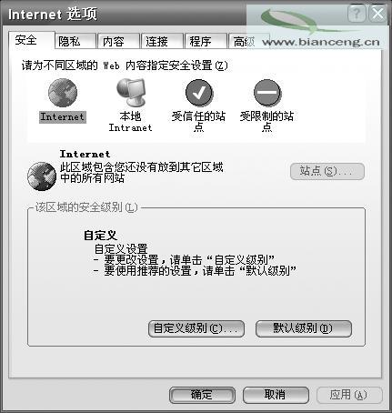 微軟的Internet Explorer讓我們可以輕松地在互聯(lián)網(wǎng)上遨游,但要想用好Internet Explorer,則必須將它配置好。在IE瀏覽器的“Internet選項”窗口中,提供了比較全面的設(shè)置選項(例如:“首頁”、“臨時文件夾”、“安全級別”和“分級審查”等項目),但部分高級功能沒有提供,而通過組策略即可輕松實現(xiàn)這些功能。下面來看具體實例:
