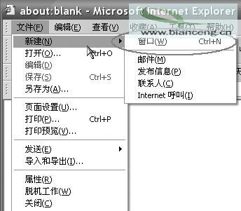 打開“組策略控制臺→用戶配置→管理模板→Windows 組件→Internet Explorer→瀏覽器菜單”,然后打開“禁用‘在新窗口中打開’菜單項”并設(shè)置為“啟用”。啟用該策略后,用戶在某個鏈接上單擊鼠標(biāo)右鍵,然后單擊“在新窗口中打開”時,該命令將不起作用。該策略可與“‘文件’菜單禁用‘新建’菜單項”一起使用,后者禁止用戶通過單擊“文件”菜單,指向“新建”,然后單擊“窗口”在新窗口中打開瀏覽器(如圖8所示,“新建→窗口”項目已經(jīng)無法使用)。
