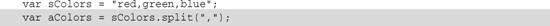 此刻也許你想知道,既然Array具有把自己轉(zhuǎn)換成字符串的方法,那么String是否有把自己轉(zhuǎn)換成數(shù)組的方法呢?答案是肯定的。String類的方法split()正用于此。split()方法只有一個參數(shù)??赡苡凶x者已經(jīng)猜到,該參數(shù)就是被看作數(shù)組項之間的分隔符的字符串。因此,如果有一個由逗號分隔的字符串,就可以用下面的代碼把它轉(zhuǎn)換成Array對象: