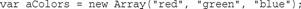 還可以用字面量表示定義Array對象,即使用方括號([和]),用逗號分隔值。例如,可以用下面的形式重寫前面的例子: