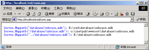 <%=Server.Mappath("database/cnbruce.mdb")%> <%=Server.Mappath("/database/cnbruce.mdb")%> <%=Server.Mappath("../database/cnbruce.mdb")%> |