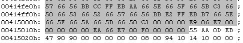 首先就是用一款二進(jìn)制編輯器把BIOS的ROM導(dǎo)出來。我們用的最多的就是UltraEdit了。關(guān)鍵之處!我們在VMware的安裝文件夾下面的Bin文件夾(X:\Program Files\VMware\VMware Workstation\bin)下vmware-vmx.exe文件里面,查找字段EA 66 E7 00 F0 00 00 00,這個在文件里就只有一處。然后從這個00(包括00)往上選定512K就是524288個字節(jié),這些信息在UltraEdit的狀態(tài)欄里都能看到。利用UltraEdit的保存選區(qū)為功能保存到一個后綴為ROM的文件。??!注意:剛才選中的不要釋放掉,一是再拖動一次太浪費時間,二是在后面容易出錯。