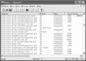 打開軟件,執(zhí)行“File→Check URL”打開一個對話窗口,輸入你要檢查的網(wǎng)站地址,“OK”后軟件就會自動訪問網(wǎng)站并驗證每個鏈接地址,驗證結(jié)束后就會將結(jié)果顯示在驗證列表中(圖2),對于無效的鏈接,軟件會以紅色字體加以區(qū)別。在失效鏈接的右鍵菜單中選擇“Properties”,然后在“Properties”窗口中的“Pages linking to”下可以查看到哪些網(wǎng)頁使用了這個無效鏈接,對這些網(wǎng)頁單獨下載加以修復(fù)就可以了。