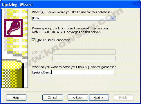 為了啟動(dòng)數(shù)據(jù)庫(kù)升級(jí)向?qū)В葟墓ぞ卟藛螜谥羞x擇數(shù)據(jù)庫(kù)功能,然后從子菜單中選擇升級(jí)向?qū)?。向?qū)У牡谝粋€(gè)面板提供兩種選擇:你可以建立一個(gè)新的SQL Server 數(shù)據(jù)庫(kù)來(lái)存放Access表格,如圖A所示,或者你可以在一個(gè)現(xiàn)成的SQL Server數(shù)據(jù)庫(kù)中添加表格。選擇一個(gè)現(xiàn)成的SQL Server數(shù)據(jù)庫(kù)將需要輸入一個(gè)數(shù)據(jù)服務(wù)名稱(DSN)。