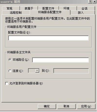 從“終端服務配置文件”選項里取消“允許登錄到終端服務器(W)”的選擇,然后點擊確定繼續(xù)我們的設(shè)置。(見圖10)