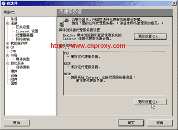 以RealOne Player 2.0為例。單擊菜單“工具→首選項→連接”,進入“代理服務器” 標簽頁,如圖所示。