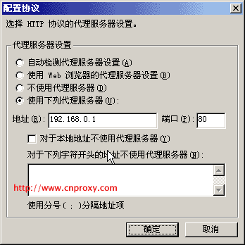 從圖5的“代理服務器設置”下的列表中,雙擊HTTP協(xié)議,設置如圖。
