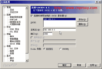 在左邊的設置快捷工具欄中選擇“連接”→“SOCKS4 & 5”可以設置Socks代理。