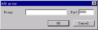 在菜單中選取 Add…,顯示如下對話框。在Proxy編輯框中輸入代理IP地址,在Port編輯框中輸入相應(yīng)端口。一般添加10~20個就足夠了。