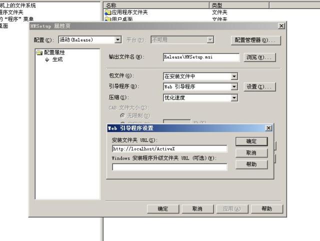 下一步,我們改動項目屬性,將引導程序更改為 Web引導程序。很遺憾的是,在 Web引導程序設置 中的安裝文件夾URL中必須使用絕對路徑,不能使用相對路徑。這意味著生成安裝程序的時候就必須確定路徑,不是很方便。在示例中,我使用了localhost,在發(fā)布中可以改為實際的域名。