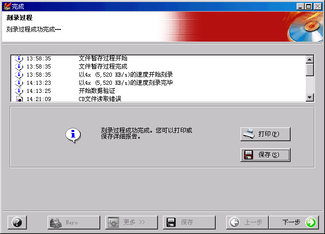 很快我們就看到了結(jié)果,整個(gè)刻錄時(shí)間14分48秒,刻錄過程中對CPU的占用并不高,筆者P4 2.4的計(jì)算機(jī)占用一直在4~8%之間。